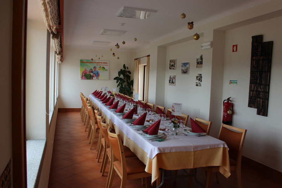 A sala de refeições dispõe de uma magnífica varanda e terraço, proporcionando uma vista exuberante para as Serras da Estrela e da Gardunha. Os residentes podem ainda disfrutar de uma sala mais reservada destinada a refeições privadas com familiares e/ou amigos, como na comemoração do seu aniversário.